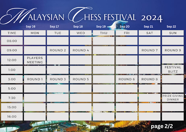 | Saturday, 20th September | 20th Dato Arthur Tan Malaysian Open Chess Championship |